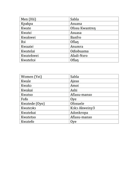 The names are so many, so i am going to pick a few popular Ga names with their Sabla from different Akutso and We. I am sure you will find a friend's name in there. Call them and ask them if they know their appellation.