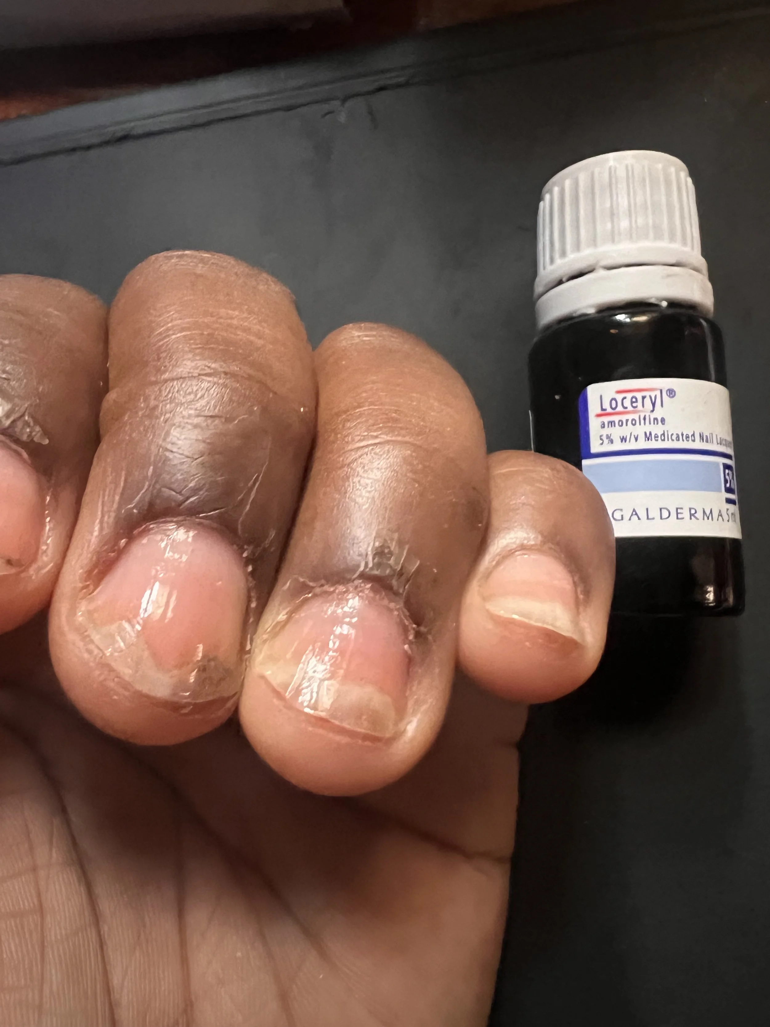 The dermatologist, without fail, diagnosed it as a fungal infection (already knew that chale). I received the prescription while crying inside. I left the clinic with a GHC1,100 bill. I was prescribed Terbinafine, Loceryl, and Nuvit multivitamin. The multivitamin would provide me with a mineral boost for healthy nails, he assured me, as I lamented the inconvenience of this infection. He warned me not to miss any days whilst taking the medications. Thank God for technology and the medication reminders on Apple Health. Once I input the prescription in, I was able to keep tabs on taking these meds for the next six weeks. Six weeks of swallowing Terbinafine an antifungal pill plus a multivitamin. Loceryl lacquer required me to put in the work twice a week. I had to wipe my nails, file the infected nails down before applying the lacquer. I put in the work for this and it really paid off in the end. Did I mention the price of the Loceryl? Oh I didn’t? Well…it’s GHC400 a box! Imagine if I had same fungus on my toenails also! That would have meant 2 boxes of Loceryl and chewing gari for the rest of the year. Thank God it wasn’t so.