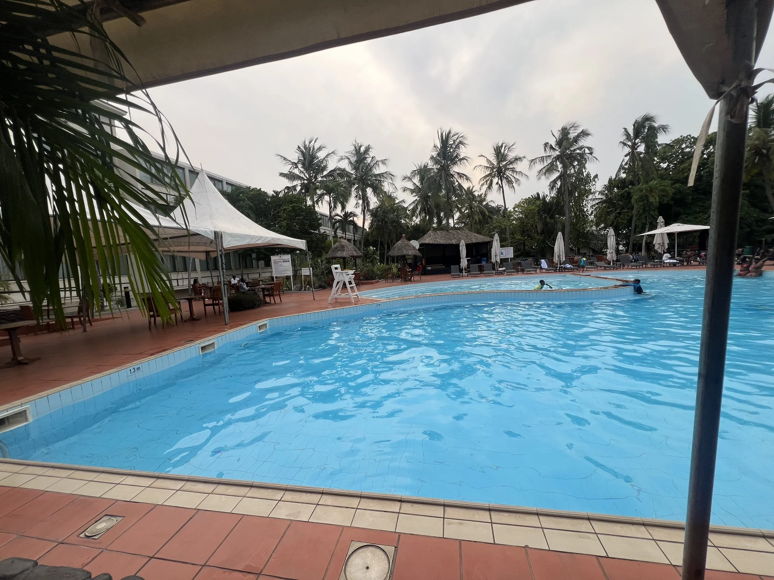 We descended down to the restaurant area, and it was literally empty. When we got to the poolside, it was vastly empty save for two young men in the water. I did a double-take. It’s Independence Day, where’s everyone?? A lone speaker with poor-quality sound was playing Nigerian afrobeats; there were no decorations to even mark the national holiday. No kente, no Ghana flags, nothing! My mind couldn’t wrap around what I was seeing.