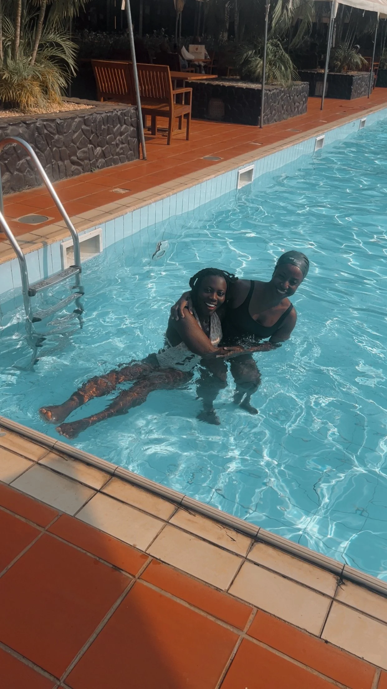 I got to the bar, and a lady behind the till was busily chewing on a toothpick whilst attending to a couple in front of me. It got to my turn, no smiles, just a curt answer to the rate for swimming. The nonchalance was killing me! Adults swimming rate is Ghc150 and Ghc 130 for children. I asked for a waiter to attend to my Mom and changed to swim. The heat of the day was 32°C and change. I had never swam in this pool, and I was totally looking forward to a relaxing experience. After 20 minutes of swimming, I went to check on my Mom, and she hadn’t been served or seen to! I went back to the bar, and the same nonchalant lady called another person to attend to her. My Mom finally got a drink after a 30-minute wait!